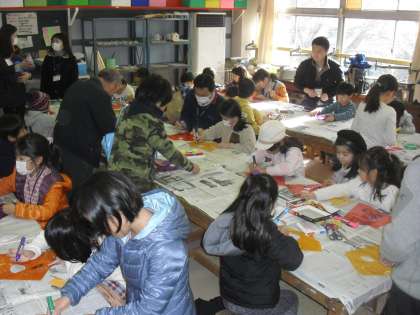 地域の方にたこ作りを教えてもらいながら、世界にたった1つしかないオリジナルたこを作りました。