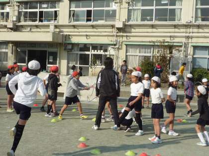 朝、中、昼とは・・・?なんだかお食事の時。と答えたくなりますが、用賀小学校では、休み時間のことなのです。どんなに寒くてもこの3回の休み時間には校庭が満員になります。そして多くの先生方も一緒に遊びます。寒い風が吹いていても子どもと一緒に走り回ればポッカポッカです。