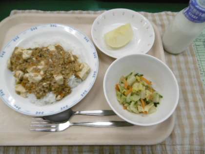 12/18 本日の給食 公開日 2014/12/19 更新日 2014/12/19 給食 〜今日の献立〜 麻婆豆腐丼 牛乳 辣白菜 くだもの(りんご) 〜給食メモ〜 今日の辣白菜には、世田谷区で作られた白菜を使いました。そこでクイズです。世田谷区で作られた白菜は、次のうちのどれでしょうか? 1.金沢白菜 2.下山千歳白菜 3.長崎白菜 ※クイズのこたえは、「食材がとれたところ…」の最後にのせています。 食材がとれたところ・・・ 閉じる 米…埼玉県 豚肉…茨城県 にんにく…青森県 しょうが…高知県 長ねぎ…千葉県 たまねぎ…北海道 にんじん…千葉県 きゅうり…宮崎県 りんご…青森県 クイズのこたえは、2の「下山千歳白菜」です。昔、白菜は病気にかかりやすく、作るのが難しい野菜でした。そこで、世田谷区の下山さんが作りだしたのが、病気に強い「下山千歳白菜」です。普通の白菜の2〜3倍の大きさがあります。給食黒板のところに葉っぱを置いているので、実際に見てみて下さいね。