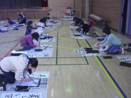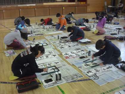 各学年の新年書き初め会が先週行われました。4年生以上は体育館に学年全員が集まり、書をしたためました。どの学年もみな落ち着いた雰囲気で、子どもたちは一画一画を集中して書いていました。