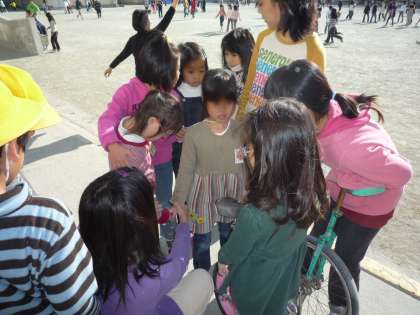 しかし、すぐそばには、4年生の女の子がいましたから安心してみていました。4年生は、二人の低学年の子の手を握って握手をさせました。ニコッと笑って一件落着です。なんだか優しくて、頼もしくて6年生みたいでした。