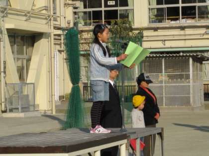 2学期の終業式の児童代表の言葉は、1・3・5年生でした。3人ともはっきりと大きな声で2学期を振り返り、3学期への思いを話してくれました。