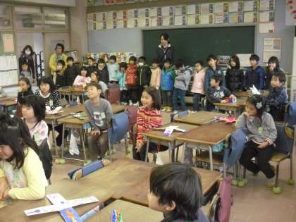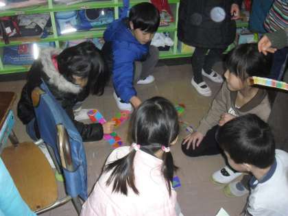 1/22 かわいいお客様 公開日 2015/01/22 更新日 2015/01/22 副校長より 一昨日は南大蔵保育園、そして今日はわくわく保育園の子どもたちが学校見学に来ました。 2年生の教室では生活科で作ったこまの発表会をしていているのを見てもらいました。そして、その後の20分休みには2年生といっしょに手作りおもちゃで遊んでもらいことができました。保育園の子どもたちも2年生もとてもうれしそうにしていました。 保育園の子どもたちには夢を膨らませて、入学式を迎えてもらいたいです。