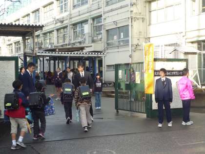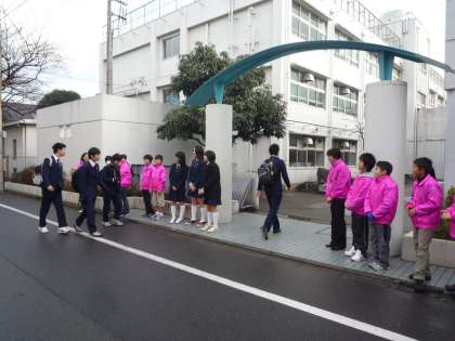 今日からおはようコミュニケーションの1日目です。今回からは、ようがの学び舎生徒会の役員がそれぞれの学校の校門に立つことになりました。そのために学び舎のロゴの入ったピンク色のジャンバーを購入して着てもらったのですが・・・!
