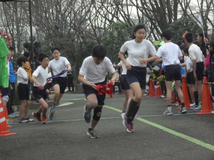 2/24 5,6年駅伝大会2 公開日 2015/02/24 更新日 2015/02/24 今日のできごと クラスごとに色分けされた襷が次々と引き継がれていきます。この襷にはクラス全員の思いが込められています。その襷を子どもたちは自分のもてるすべての力を発揮してつないでいきました。 また、まわりで見ているすべての人が懸命に走っている子どもたちに精いっぱいの声をかけていました。そうした人たちの思いがまた走っている子どもたちの背中を押しています。