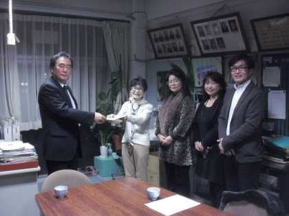 前回までの会合で皆様からいただいた学校関係者評価の集計結果について様々なご意見やご感想をいただきました。それを踏まえて作成した報告書を江藤委員長より校長が受け取りました。