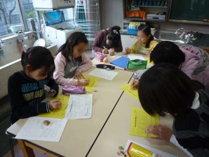 ・料理クラブ・・・今日は料理の実習ではなく来週のクッキー作りの準備をしていました。グループで相談して計画表をつくっていました。来週がたのしみ!