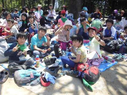 そして、みんなそろって山頂でおいしく弁当をいただきました。