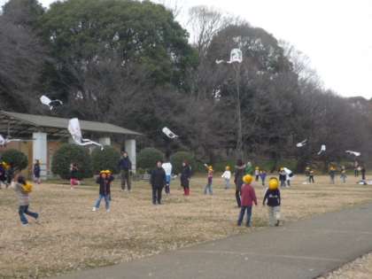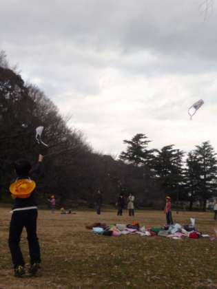 1年生の凧揚げは、毎年砧公園で行います。今日の天候は、心配しましたが風も気温も絶好の凧揚げ日和でした。学年のお母様方にもお手伝いをいただきましたが、子どもたちは元気よく走りまわっていました。風の具合がとてもよかったのでずい分高く上がった子もいて本当に満足したひと時でした。
