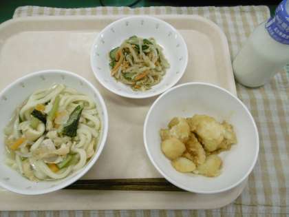 5/7 本日の給食 公開日 2015/05/07 更新日 2015/05/07 給食 〜今日の献立〜 きつねうどん 牛乳 みそポテト 野菜のごま酢和え 〜給食メモ〜 今日は、「みそポテト」のクイズを出したいと思います。みそポテトは、ある地方の郷土料理です。さて、どこの郷土料理でしょうか? 1.東京都 2.埼玉県 3.千葉県 今日も、残さずに食べてくれるとうれしいです。 ※クイズのこたえは、「食材がとれたところ…」の最後にのせています。 食材がとれたところ・・・ 閉じる 鶏肉…岩手県、宮崎県 鶏卵…青森県 じゃがいも…鹿児島県 こまつな…東京都(江戸川区) たまねぎ…佐賀県 にんじん…徳島県 長ねぎ…千葉県 もやし…群馬県 きゅうり…埼玉県 クイズのこたえは、2の「埼玉県」です。みそポテトは、埼玉県秩父市の郷土料理です。秩父市には、「小昼飯」といって農作業の合間など、小腹がすいたときに食べる郷土料理がたくさんあるそうです。みそポテトもそのひとつです。