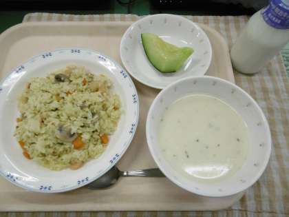 今日のスープは、「じゃがいものポタージュ」です。そこで今日は、「じゃがいも」のクイズを出したいと思います。私たちがいつも食べているのは、じゃがいものどの部分でしょうか?