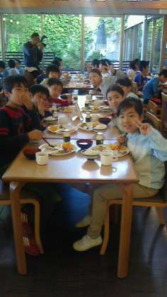 朝食 公開日 2015/05/14 更新日 2015/05/14 今日のできごと 宿舎の食堂で初めて食べる食事です。窓が大きくとても開放的です。 今朝は和食のメニューです。食事係の子が中心になって準備をしました。しっかり食べて山登りに出かけます。