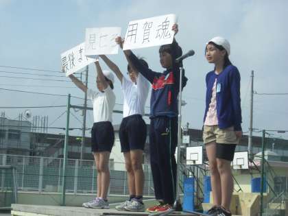 次に、運営代表委員会から運動会のスローガンの発表がありました。