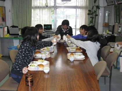 用賀小学校恒例、校長先生と6年生との会食が始まりました。