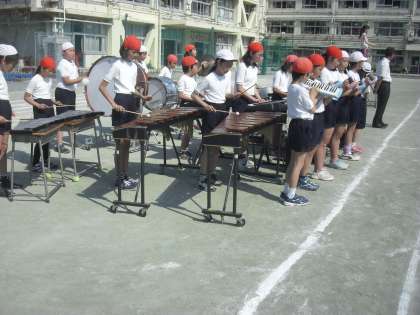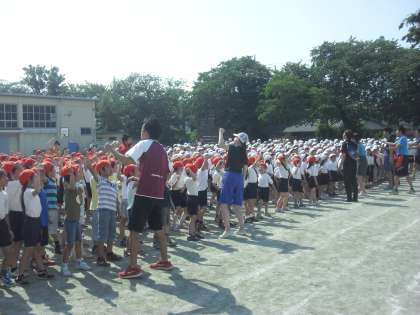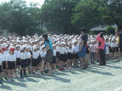5月27日 音楽朝会 公開日 2015/05/27 更新日 2015/05/27 校長室より 深水先生の指揮と音楽委員会の伴奏で、「運動会の歌」を赤・白に分かれて、元気いっぱい歌いました。深水先生が、歌声や姿勢で赤・白どちらが優勢かを判定しました。 1回目は、白の勝利、2回目は赤の勝利。そして3回目は引き分けでした。 さぁ、運動会当日は、どちらが勝利するか楽しみです。