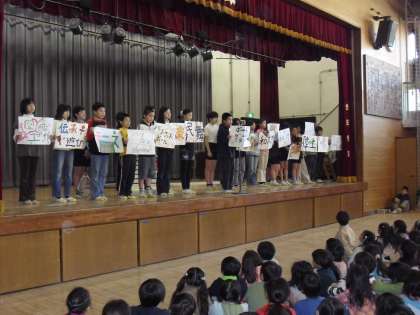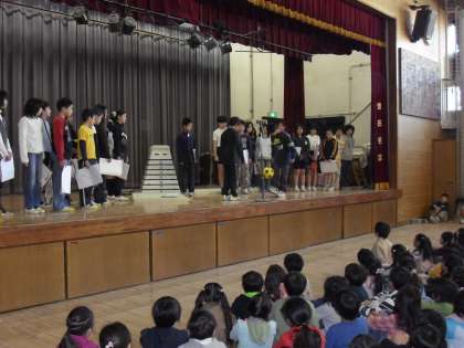 2/5 クラブ発表全体会 公開日 2010/02/05 更新日 2010/02/05 校長室より 今日の集会はクラブ発表全体会です。クラブ長さんから活動内容の説明がありました。今年度は18のクラブがあり、どのクラブも主体的に楽しそうに活動しています。来年度に向けて、3年生が今後2回のクラブ見学を予定しています。