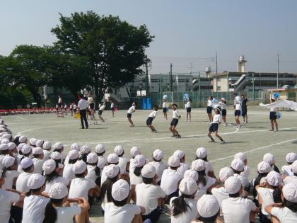 運動会の応援の中でも、エール交歓を特に大切にします。紅白で競い合う中にも、相手に対する敬意を払って全力を出し切ることを誓い合うからです。ただ、いたずらに相手を攻撃したり、自分たちだけの勝利を願うような応援は用賀小学校の応援ではありません。