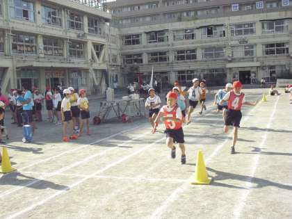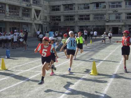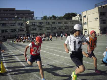 6/4 高学年リレー 公開日 2015/06/04 更新日 2015/06/04 今日のできごと 高学年のリレーでは毎日朝練習をしています。チームごとに集まり、ウォーミング・アップや基礎練習をしたり、自分たちでミーティングをし、互いに教え合ったりしています。6年生を中心としたをチームのまとまりや自主性を大切にしています。そうした中でチームの絆も深まっています。 また、バトンパスなどの基礎的な技術も練習でしっかりと身に付けています。