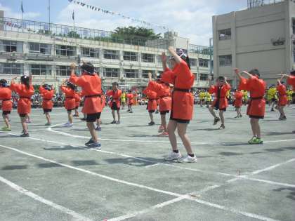6月7日 運動会(2) 公開日 2015/06/07 更新日 2015/06/07 校長室より 演技が始まりました。 1年生の「闘え!マタドール」は、1年生が小さな闘牛士となりました。会場からも「可愛い」との歓声があがっていました。 6年生の100m走は、最上級生らしく、皆が最後まで全力で走りました。 2年生の「用賀ちびっこ あわおどり」は、可愛らしさとともに、指先まで気持ちのこもった踊りでした。