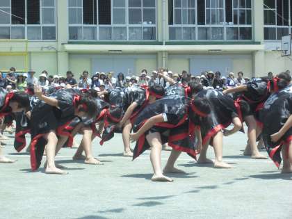 6月7日 運動会(5) 公開日 2015/06/07 更新日 2015/06/07 校長室より 午前中の演技も終盤となりました。 5年生「百花ソーラン」は、一人一人が気持ちのこもった、全力の演技を見せました。