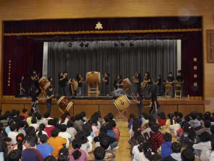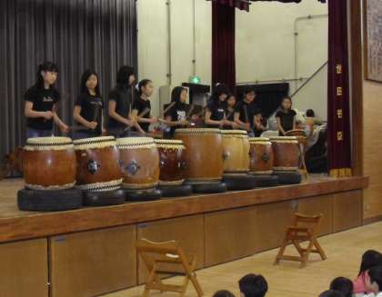2/12 クラブ発表〜和太鼓クラブ〜 公開日 2010/02/12 更新日 2010/02/12 校長室より 今日の集会は和太鼓クラブの発表です。「まつり太鼓」「ぶち合わせ太鼓」、そして6年生のみの「長良川太鼓」の発表がありました。力強い太鼓の音とともに地響きが体育館に響き渡りました。声を掛け合いながら、力を合わせて気持ちを一つにしている姿はとってもかっこよかったです。