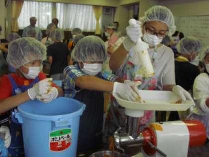 6/18 5年食育「パワーアップ大作戦〜味噌詰め〜2」 公開日 2015/06/19 更新日 2015/06/19 学年 味噌詰めを行ったランチルームは、味噌のよい香りが漂い、味噌のよさを感じることできた時間でした。みんなで一所懸命作った味噌。農大の古庄先生にもたくさんご指導いただきました。ありがとうございました。2学期も食育の学習は続きます。味噌づくりの経験を生かしていきます。
