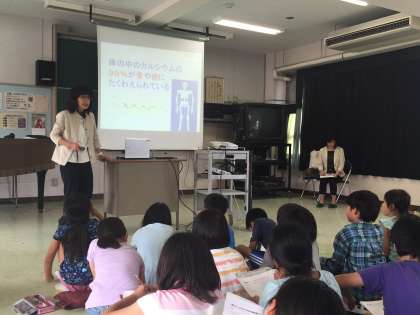 4年生 食育「骨太くん」 公開日 2015/06/20 更新日 2015/06/20 学年 6月18日(木)に、4年生の食育の学習として「骨太くん」の出前授業が行われました。 講師の先生は、雪印メグミルクの栄養士の方々です。 カルシウムをはじめ、骨を強くする栄養素についてのお話や、睡眠・運動など健康に生活していくために大切なことを教えていただきました。ありがとうございました。