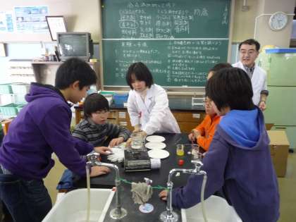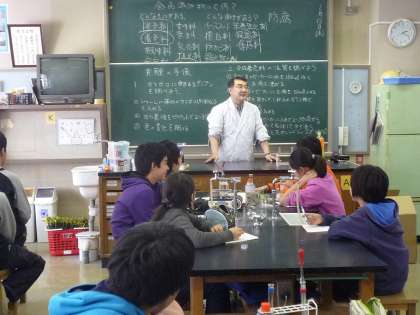 東京農業大学の古庄先生が6年生の食育の講義してくださいました。食品添加物について理科室での実験を通して考える学習ですが大学の学生さん方も大勢来て、大変興味深い授業でした。