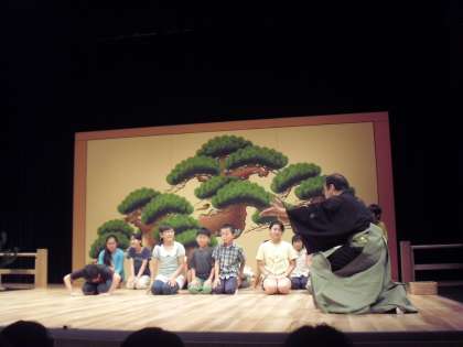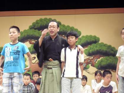 昨日7月2日(木)に玉川区民会館で古典芸能鑑賞教室が行われました。6年生が参加し、室町時代から続く日本の伝統芸能を堪能してくることができました。まず、前半はワークショップ。狂言とは何かを教えていただいた後、狂言に出てくる台詞や動作を弟子となって師匠から教えていただきました。各学校の代表児童が狂言の舞台に立たせていただき、「このあたりのものでござる〜。」と狂言独特の節回しで台詞を言ったり、のこぎりを切る動作を、「ずか、ずかずかずか〜。」と擬音語と共に演じたり、楽しみながら役者になりきって演じることができました。