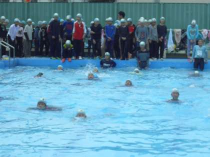 学年で一番泳ぎが得意な子どもが、開口一番、「泳げるけれど、めちゃくちゃしんどい」と言えば、他の子どもは、「服が重くて疲れる」、「動きにくい」など、想いの思いの感想を口にしていました。