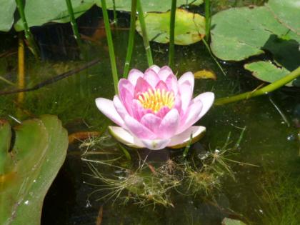 保健室前の睡蓮と、校長室のトケイソウがとってもきれいです。