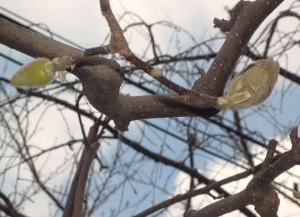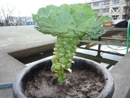 校長室の前の一坪畑では、収穫の終わったブロッコリーのわきの花芽がほころび始めています。芽キャベツはもう収穫間近。校門の白木蓮のつぼみもずいぶん大きく膨らみました。