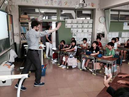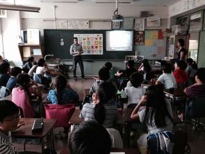 簡単な自己紹介を英語で話したり、音楽に合わせてアルファベットを発音したり、子どもたちは楽しみながら授業に取り組んでいました。