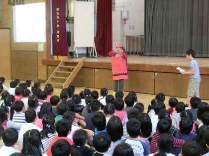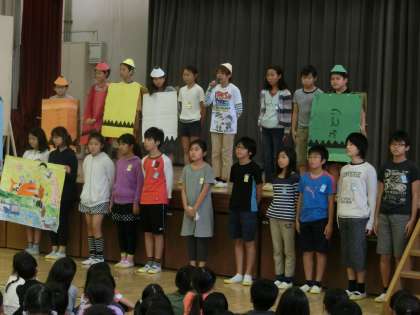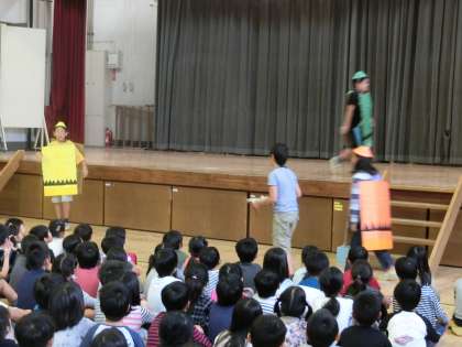 9/17 図書委員会発表 公開日 2015/09/17 更新日 2015/09/17 委員会・クラブ活動 朝の時間に、体育館で図書委員会の発表がありました。「クレヨンからのおねがい」という本の内容を劇で演じ、全校児童に分かりやすく伝えました。 今日の発表を通して、用賀小学校の子どもたちが、もっと本を好きになるといいですね。