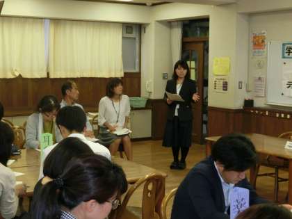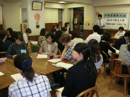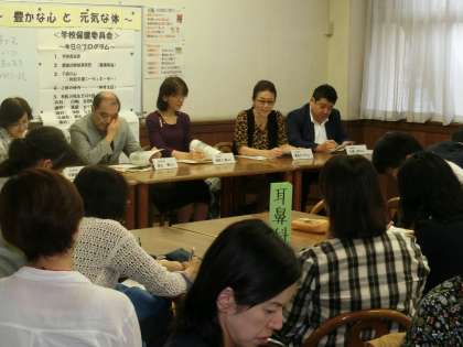 9月17日 学校保健員会 公開日 2015/09/18 更新日 2015/09/18 今日のできごと 校医の先生、保護者の方々及び教員が参加し、学校保健員会をランチルームで開催しました。 第1部は、学校から児童の体力面や運動面、特別支援委員会の役割等について説明をしました。また養護教諭より、児童の健康診断の結果についての説明をしました。
