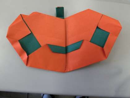 ランチルームの「つきいちサロン」では、折り紙でかぼちゃを作りました。