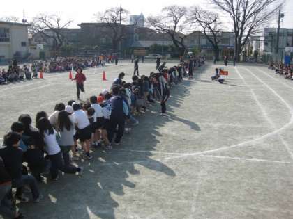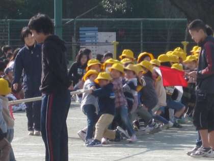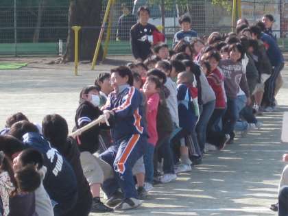 どの子たちも一生懸命に綱を引いていました。5、6年の対戦には先生も加わって回りから大きな声援がおきました。