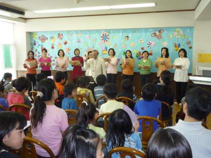 お話しランドの言葉遊びや、土屋先生の読み聞かせ、らららようがの合唱など盛りだくさんのメニューでした。