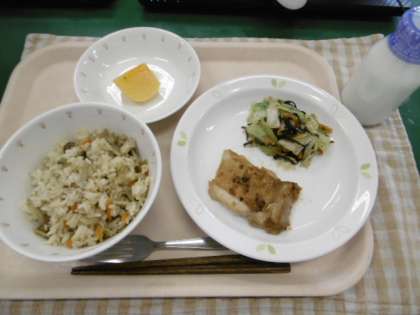 9/29 本日の給食 公開日 2015/10/03 更新日 2015/10/03 給食 〜今日の献立〜 きのこごはん 牛乳 鶏肉の照り焼き 野菜の塩昆布和え くだもの(柿) 〜給食メモ〜 今日のくだものは、今が旬の「柿」です。そこでクイズです。柿には、ビタミンCがどれくらい入っているでしょうか? 1.みかんの半分 2.みかんと同じ 3.みかんの2倍 ※クイズのこたえは、「食材がとれたところ…」の最後にのせています。 食材がとれたところ・・・ 閉じる 米…埼玉県 鶏肉…青森県 にんじん…北海道 ごぼう…青森県 しめじ…福岡県 えのきたけ…新潟県 まいたけ…静岡県 にんにく…青森県 しょうが…高知県 長ねぎ…秋田県 キャベツ…群馬県 きゅうり…埼玉県 柿…和歌山県 クイズのこたえは、3の「みかんの2倍」です。ビタミンCには、風邪を予防してくれたり、お肌をきれいにしてくれるはたらきがあります。