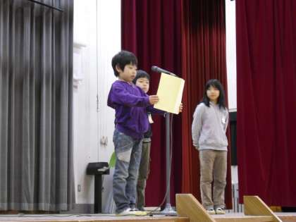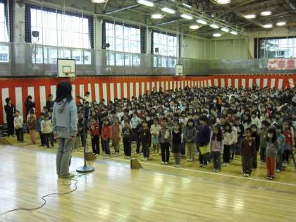 今日は1年生から5年生までの修了式です。私はこの1年間を思い返し、各学年の子どもたちの成長した部分の話をしました。どの学年の子どもたちもとてもしっかりとし、心も体もうんと成長をしました。