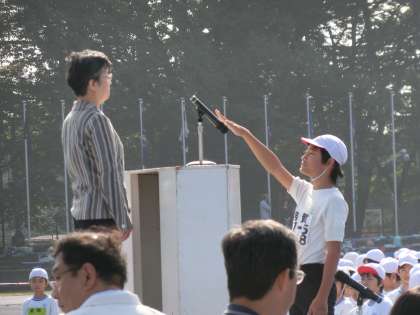 連合運動会(2) 公開日 2015/10/22 更新日 2015/10/22 校長室より 連合運動会は、用賀小学校代表児童の選手宣誓で、開催しました。 競技の前に、準備運動とジョギングをしました。どの子どもたちもリラックスした表情をしていました。