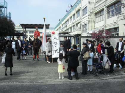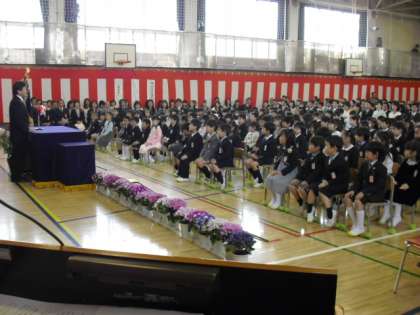 空も晴れ渡って桜の花びらが舞い散るなか、校門には交通騎馬隊のお馬さんも正門で1年生を迎えてくださいました。受付には6年生が控えていて、やさしく教室までエスコートする姿があちこちで見られました。