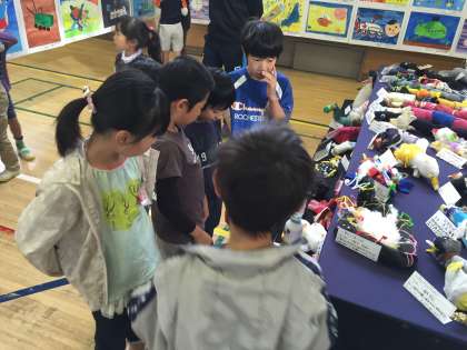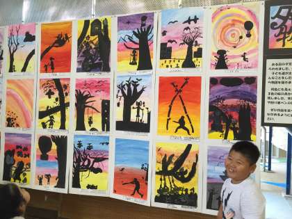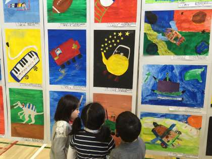 展覧会3 公開日 2015/11/13 更新日 2015/11/13 今日のできごと 3年生です。 きれいなグラデーションを背景にした「夕やけ空の物語」です。夕焼け空の中でどんなことをしたいかを想像して描きました。 「ふしぎなのりもの」では、普段身近なものも、想像力で不思議な乗り物に変身です。 使い終わった靴下や手袋に再び命を吹き込んだ立体作品も、それぞれ違う形、飾りつけになっていて魅力的です。