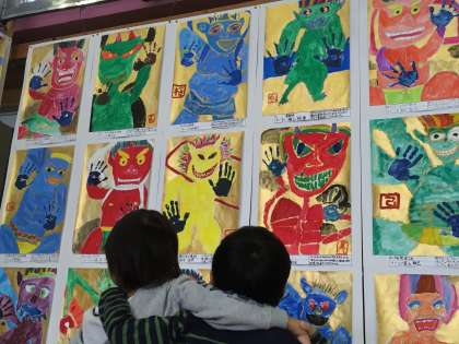 担任の先生との図工の時間では、「風神雷神」を描きました。筋骨隆々とした風神雷神は、迫力満点です。