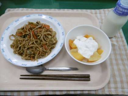 11/17 本日の給食 公開日 2015/11/17 更新日 2015/11/17 給食 〜今日の献立〜 ソース焼きそば 牛乳 フルーツヨーグルト 〜給食メモ〜 今日は、「ソース焼きそば」のクイズを出したいと思います。今日の給食のソース焼きそばには、全部で何kgの野菜を使ったでしょうか? 1.3kg 2.30kg 3.130kg ※クイズのこたえは、「食材がとれたところ…」の最後にのせています。 食材がとれたところ・・・ 閉じる 豚肉…茨城県 たまねぎ…北海道 にんじん…千葉県 キャベツ…神奈川県 もやし…栃木県 にら…栃木県 クイズのこたえは、3の「130kg」です。たくさんの野菜を、調理員さんが頑張って切ってくれました。今日の給食を残さずに食べると、1日に食べるとよいと言われている野菜の量の半分をとることができます。