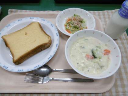 11/18 本日の給食 公開日 2015/11/18 更新日 2015/11/18 給食 〜今日の献立〜 フレンチトースト 牛乳 クリームシチュー ツナサラダ 〜給食メモ〜 今日は、「フレンチトースト」のクイズを出したいと思います。フランスでは、フレンチトーストのことを何とよんでいるでしょうか? 1.おいしいパン 2.焼いたパン 3.失われたパン ※クイズのこたえは、「食材がとれたところ…」の最後にのせています。 食材がとれたところ・・・ 閉じる 鶏肉…岩手県、宮崎県 鶏卵…青森県 じゃがいも…北海道 たまねぎ…北海道 にんじん…千葉県 ブロッコリー…埼玉県 キャベツ…神奈川県 きゅうり…埼玉県 クイズのこたえは、3の「失われたパン」です。古くなってかたくなった、おいしさの失われたパンを、牛乳やたまごにひたして、またおいしく食べられるように工夫したということで、フランス語では「失われたパン」という意味のパン・ペルデュと呼ばれているそうです。