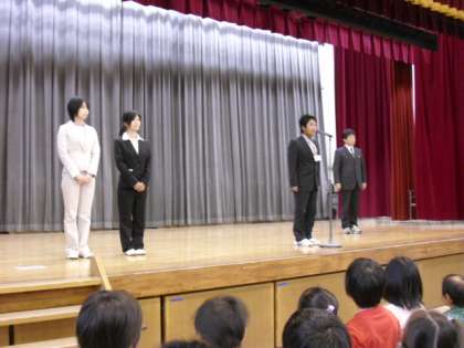 また、今年度も東京教師養成塾から2名の学生が教師になるための勉強に来ています。森下理恵先生が5年1組、浅田紘子先生が4年3組を中心にそれぞれ学びます。やる気いっぱいの2人ですが、まだまだ未熟者です。若い先生を育てていくのが私たちの使命ですので、何とぞよろしくお願いいたします。