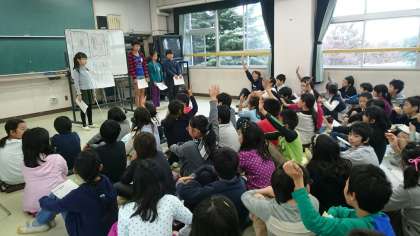 本日5時間目、東京農業大学の古庄先生にお越しいただいて、5年生が総合的な学習の時間で学んできた「食育」の発表会を行いました。