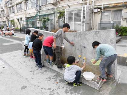 「水が冷たい!」「いい匂いがする!」「お母さんの大変さが分かる…」など、様々な声が上がりましたが、とても楽しく洗い、終わったころには達成感も感じていたようです。