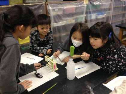 水が氷になることは子どもたちも知っていましたが、どのように凍っていくのか、また、何度で凍るのか疑問をもちました。